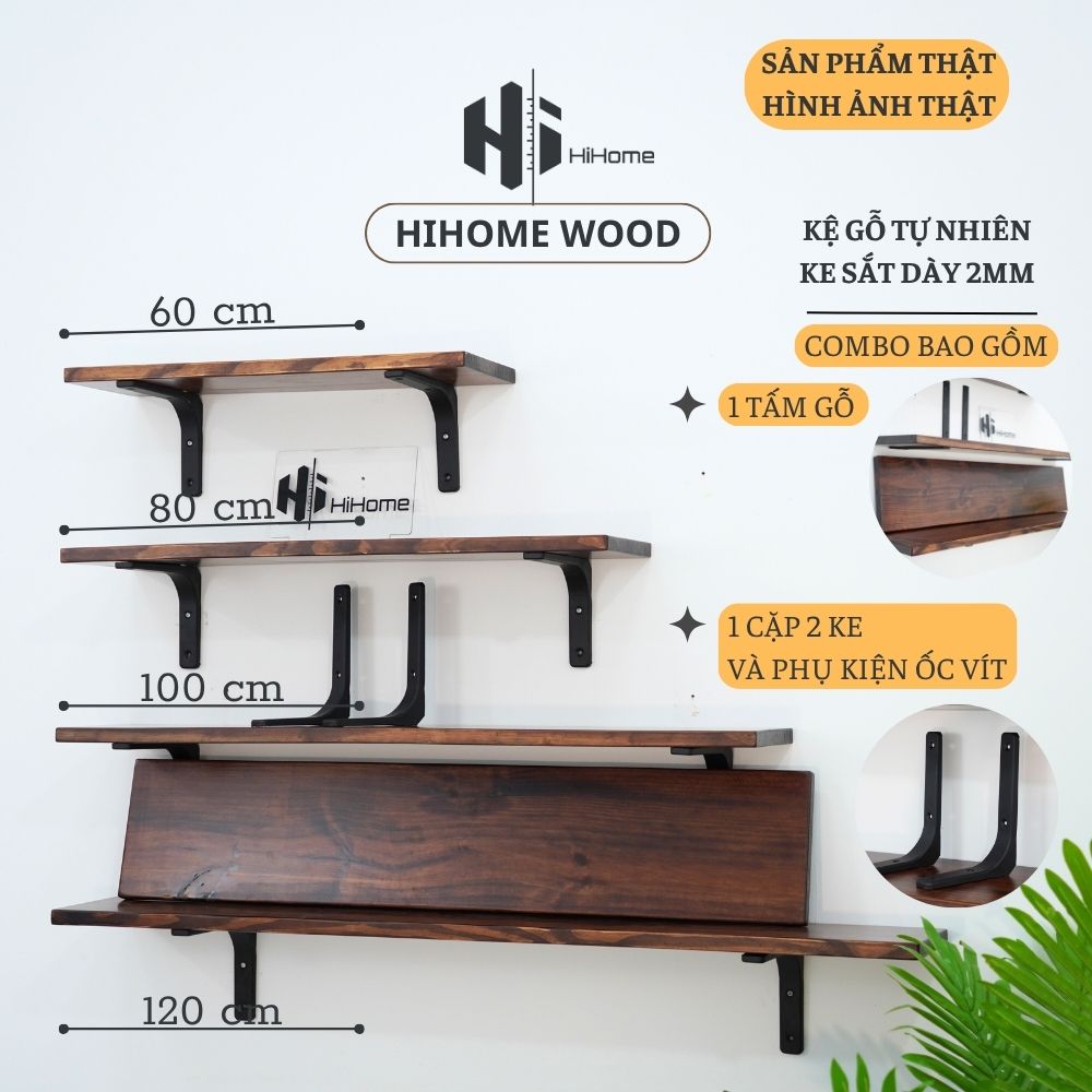 KỆ GỖ TREO TƯỜNG MÀU NÂU RUSTIC KÈM PASS KGT010.